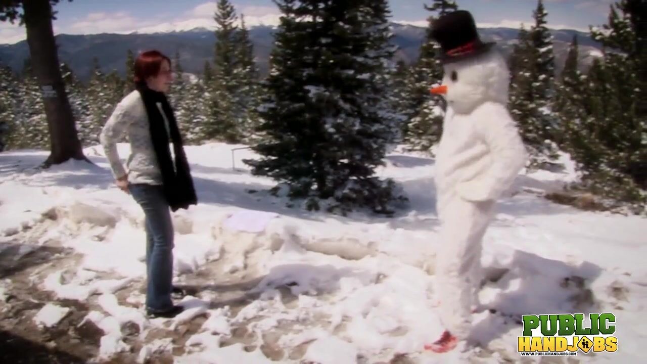 PUBLICHANDJOBS Brandi de Lafey Strokes Frosty the Snowman While Stranded in the Mountains
